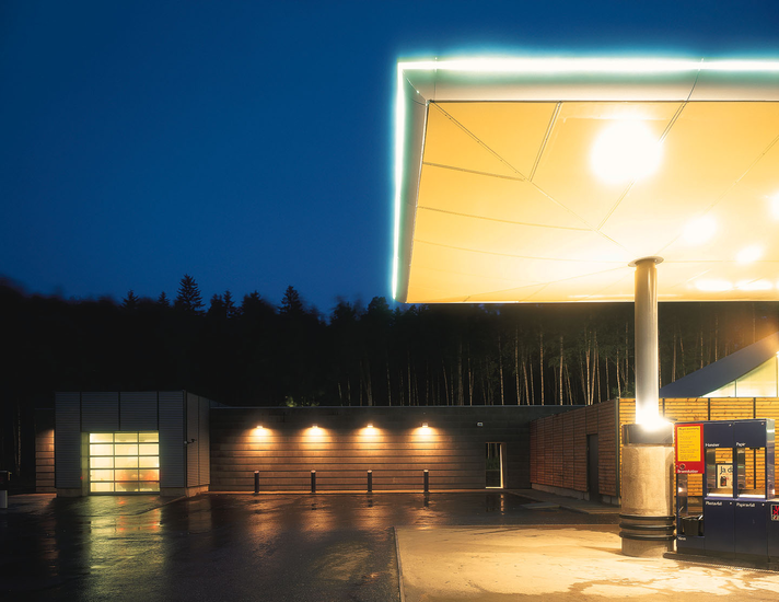 Hydro Texaco VinterbroSki, NorgeBygherreHydro Texaco Ski NorgeUdførende arkitektOdd Thorsen Design & Arkitektur Oslo NorgeHåndværksmæssig udførelseLeif Hansen Kristiansand NorgeTekniske data Facade: 100 m²6 t Sinusprofiler RHEINZINK-prePATINA blaugrauCopyright fotoRHEINZINKDatabladeKontakt