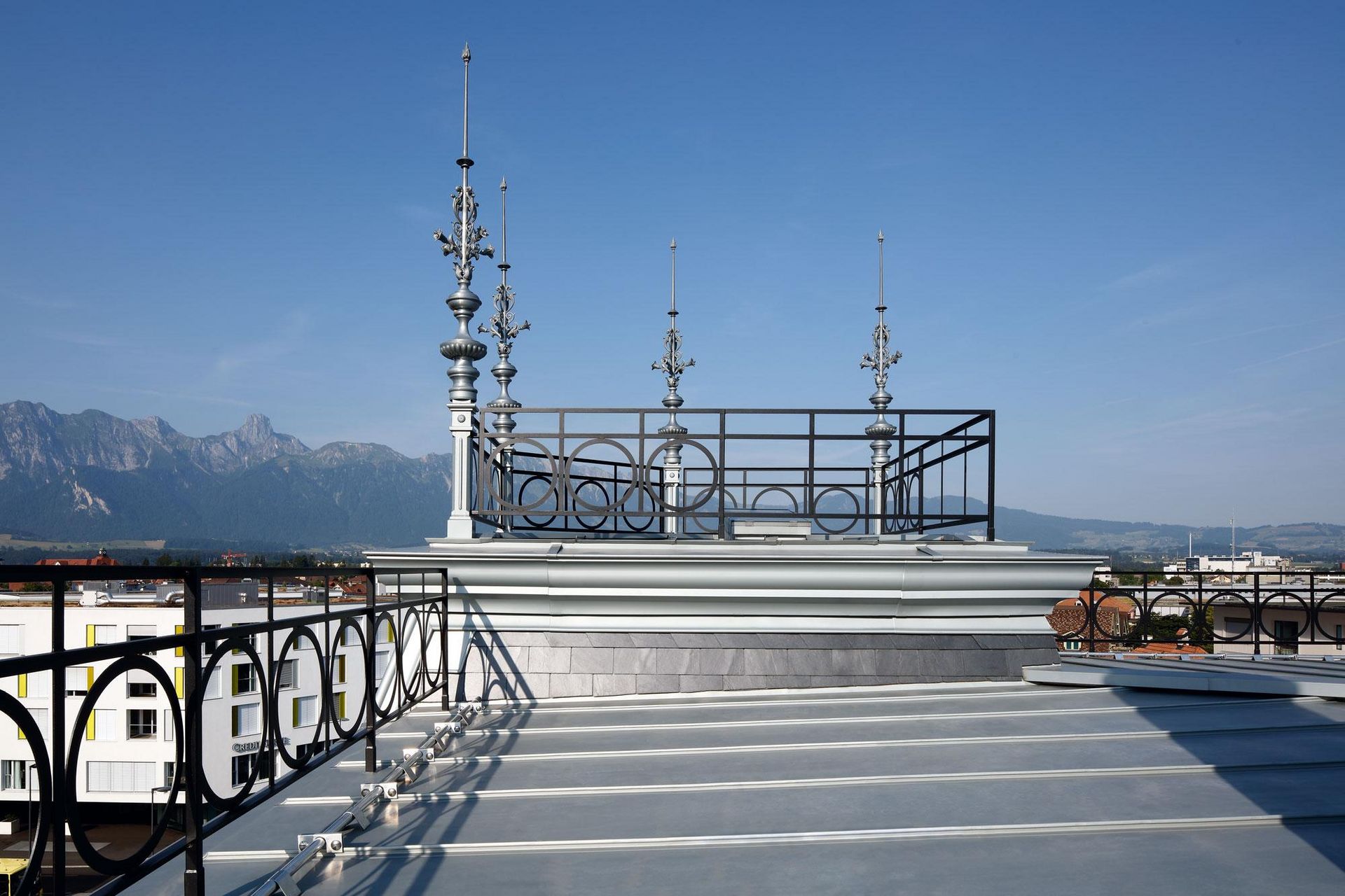 Tagtoppen på den kulturarvs beskyttede bygning “Bälliz” er meget markant for bybilledet i Thun, Schweiz. I forbindelse med en restaurering var udfordringen at bringe bygningens tidligere charme fra 1902 tilbage ved brug af nutidens teknologi, håndværk og materialer.