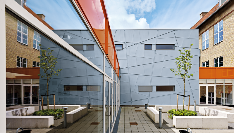 Sct. Knuds GymnasiumOdense, DanmarkBygherreSct. Knuds GymnasiumOdenseDanmarkUdførende arkitektC & W Arkitekter A/SSvendborgDanmarkHåndværksmæssig udførelsePorsholdtBrørupDanmarkTekniske data Facade: 300 m² Storrudesystem RHEINZINK-prePATINA blaugrauCopyright fotoRHEINZINKDatabladeKontakt