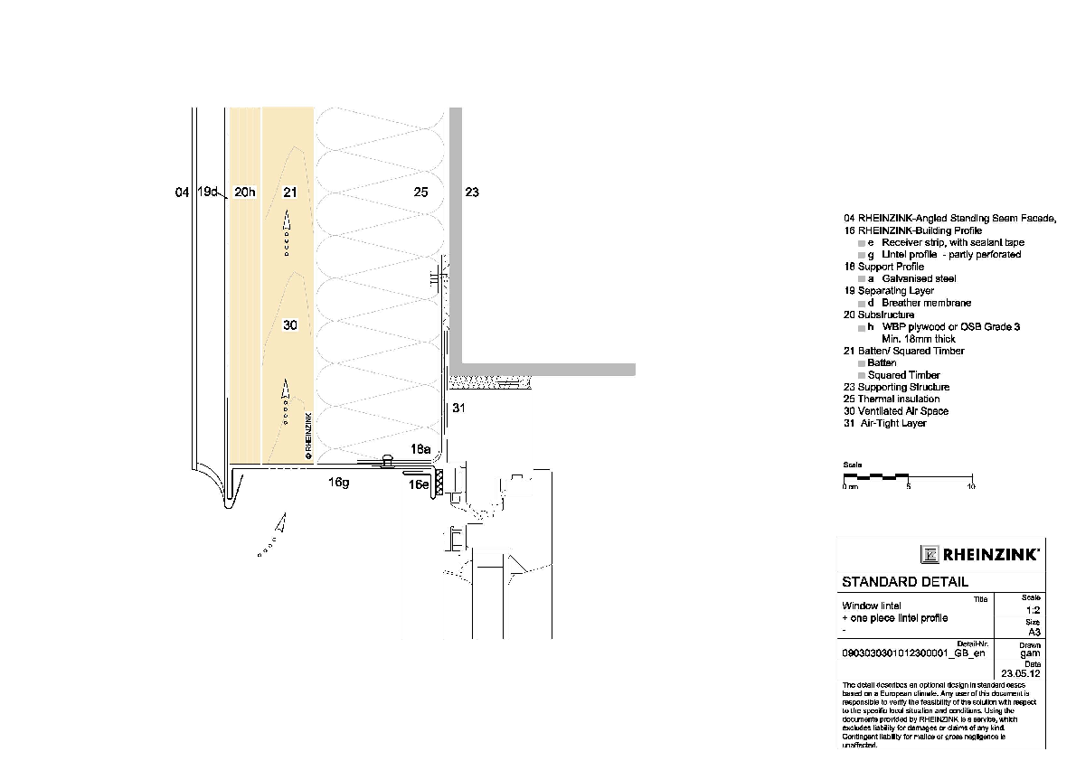 Resultattype Download Søg Aktiver Filter: Download Fjern alle filtre forrige1617181920næste Base point + cornice coping + ventilation over cornice Angled Seam - vertical pdf 289 KB Fensterbank + fassadenbündig Fassadensysteme - Winkelstehfalz PDF 210 KB Window sill + overhanging profile + drip setback + flush to seam Angled Seam - vertical pdf 393 KB Fensterbank + überstehend Fassadensysteme - Winkelstehfalz PDF 216 KB Window jamb + profile flush to seam Angled Seam - vertical pdf 271 KB Window lintel + one-piece lintel profile Angled Seam - vertical pdf 286 KB Window cill Angled Seam - horizontal pdf 312 KB Outside corner (option 1) Angled Seam - horizontal pdf 284 KB Inside corner + flush profile Angled Seam - horizontal pdf 356 KB Lateral wall connection + sealant tape Lateral wall connection + sealant tape 23 04 RHEINZINK-Angled Standing Seam Facade 16 RHEINZINK-Building Profile • e Receiver strip with sealant tape 19 Separating Layer • d Breather… pdf 244 KB forrige1617181920næste